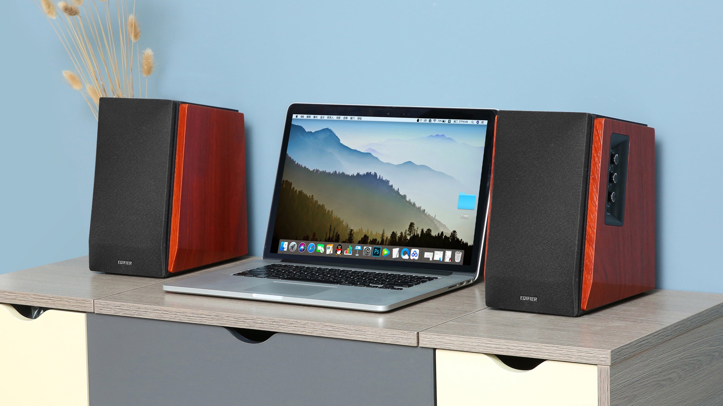 Place the speakers on a solid and stable plane, the height of which should be kept at a position parallel to the listener's ears, and the distance between the bass reflex hole and the wall should be at least 20-50cm. To get the most accurate sound and balance, the listener's best spot should be on the axis of the equilateral triangle formed by the left and right speakers. At the same time, you can adjust the angle of the speaker slightly to obtain a more ideal stereo effect